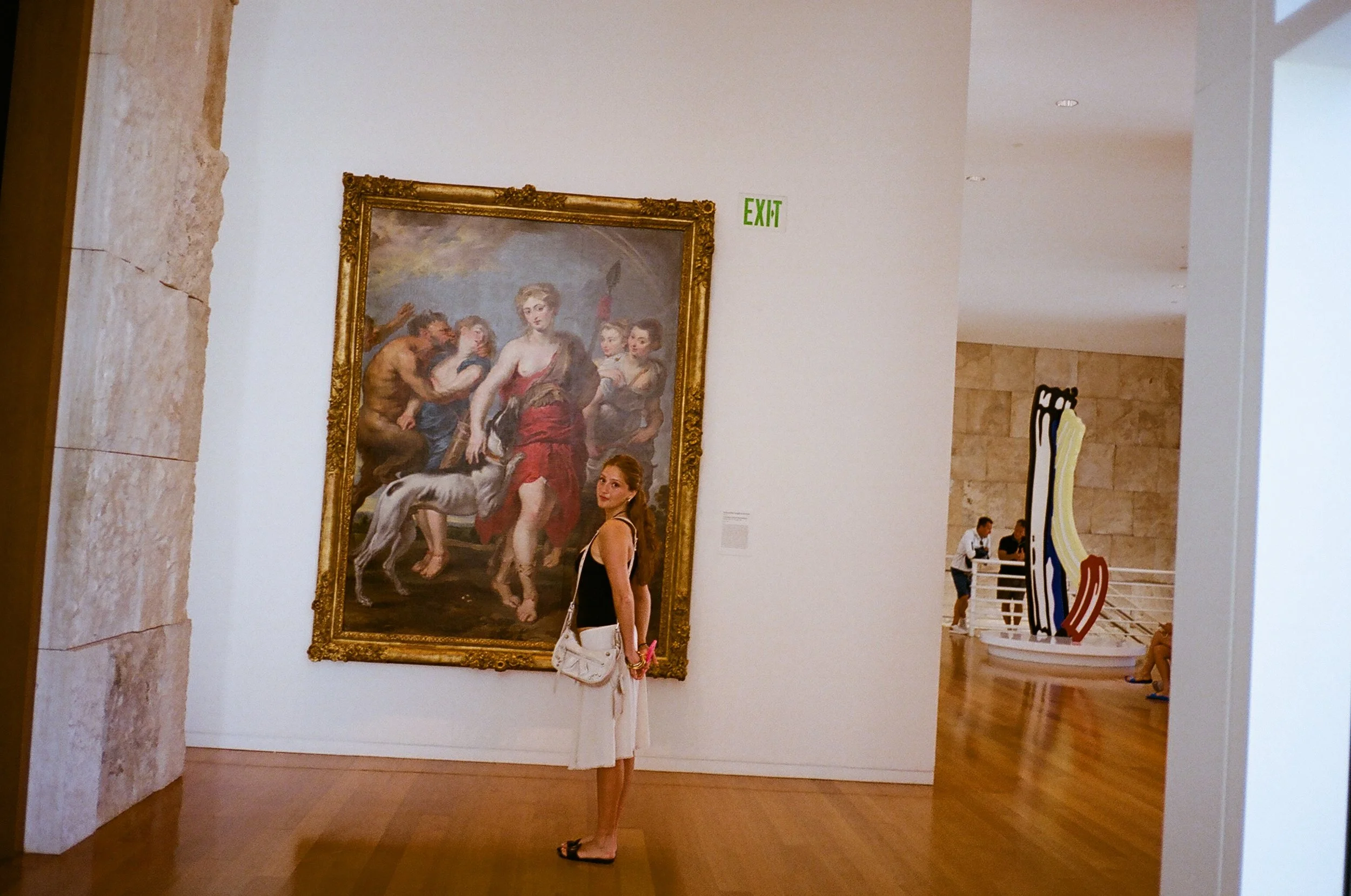 the robust figure of diana strides into the foreground, swathed in a blood-red robe and clasping a spear behind her back. the rhythmic composition, colors, and textures create a lifelike sensuousness, demonstrating the flemish painter's mastery of venetian color and his study of roman art.